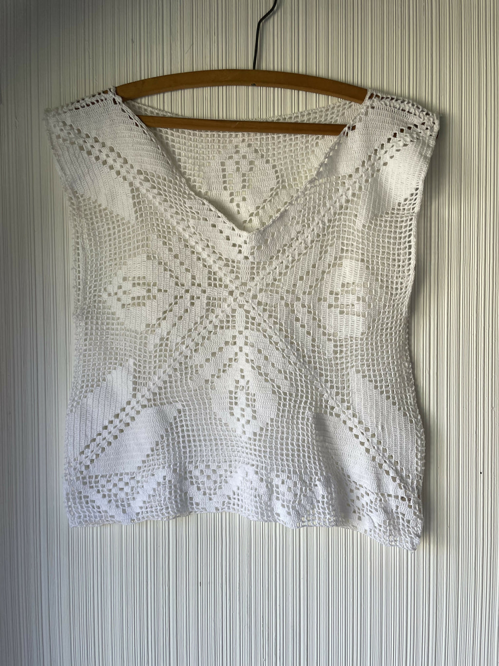 Vintage V-Neck Crochet Top Sleeveless XS-M